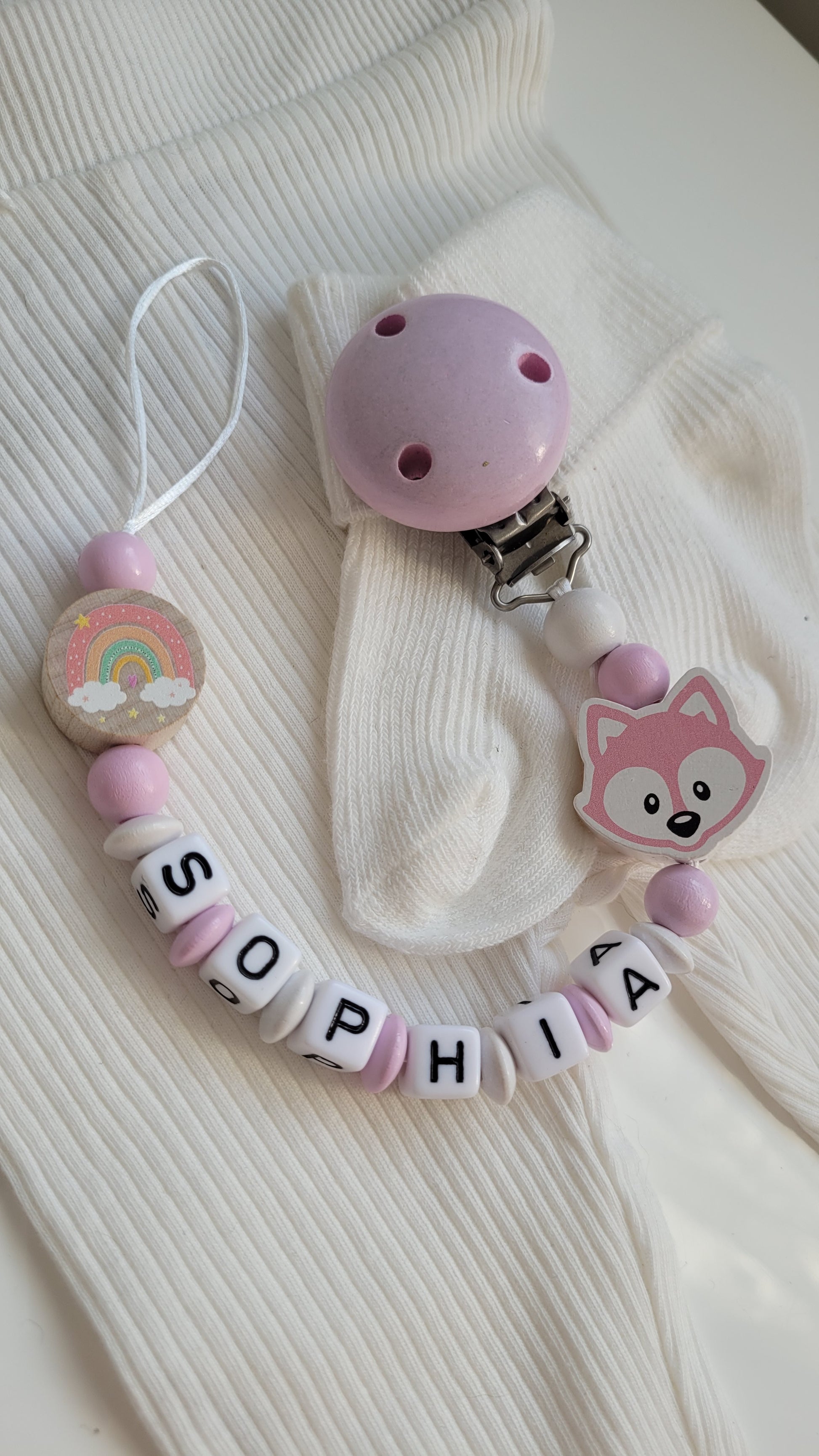 Schnullerkette mit Namen für Mädchen Regenbogen Fuchs
