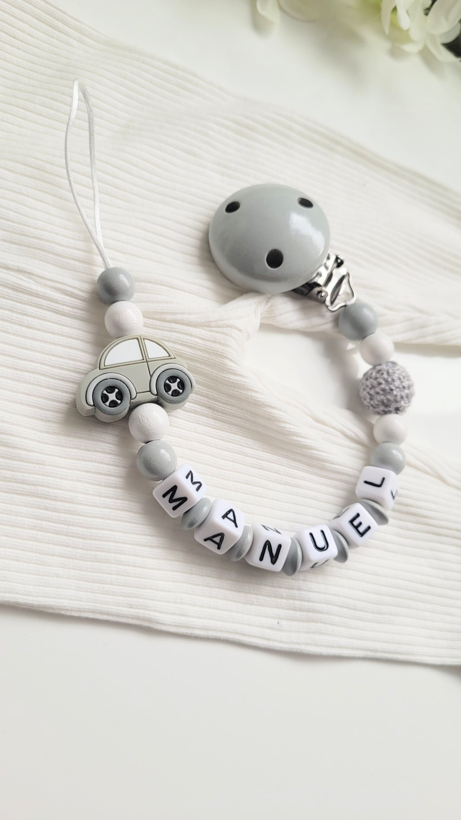 Dann wird dir diese Schnullerkette gefallen. In diesem Design findest du auch passend den Greifring, die Kinderwagenkette und einen Anhänger für die Wiege, Autoschale uvw. Bald im shop