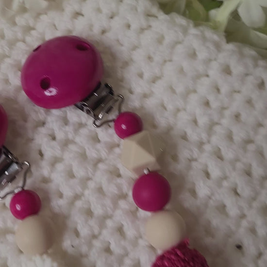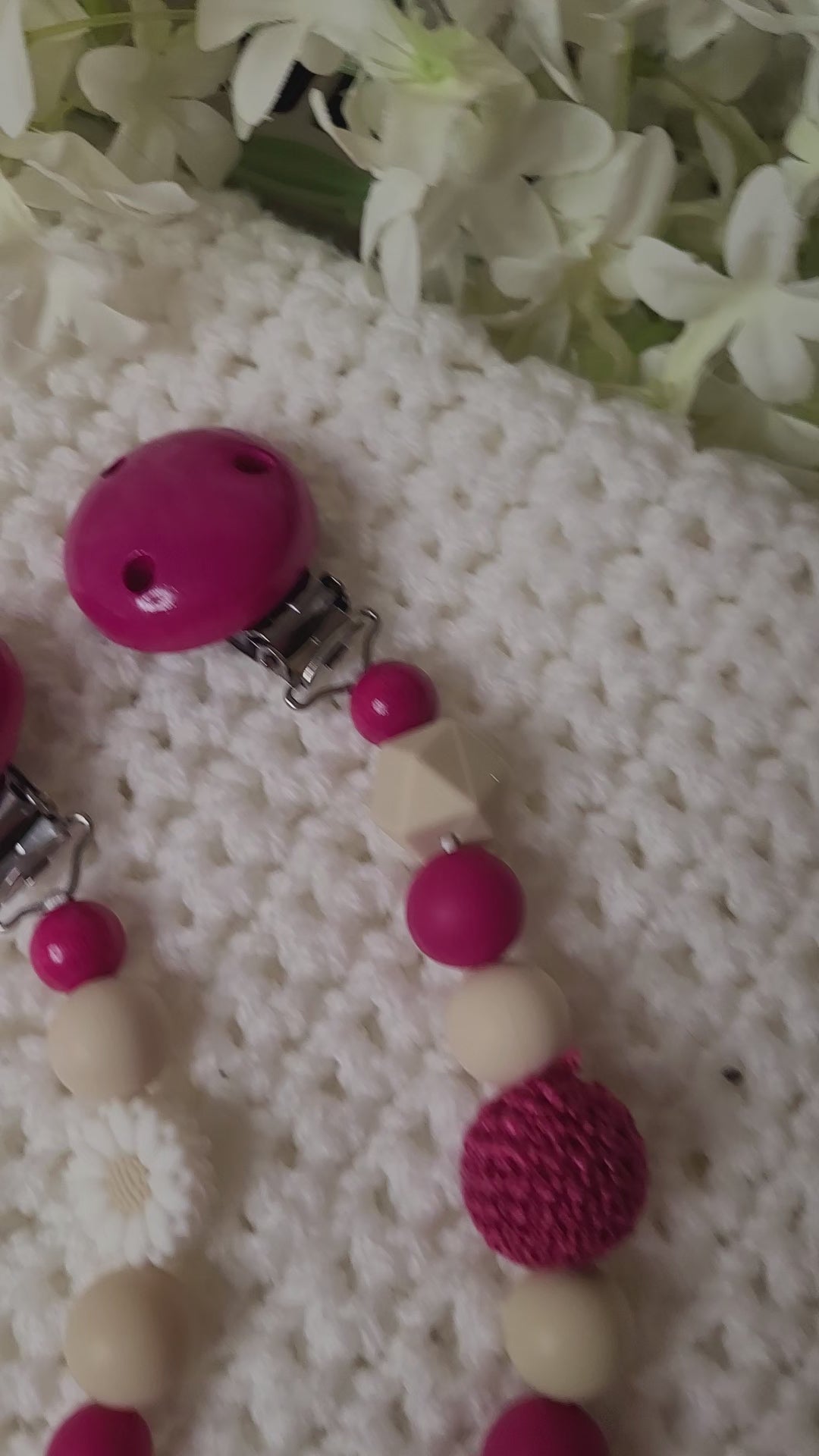 Dann wird dir diese Schnullerkette gefallen. In diesem Design findest du auch passend den Greifring, die Kinderwagenkette und einen Anhänger für die Wiege, Autoschale uvw. Bald im shop