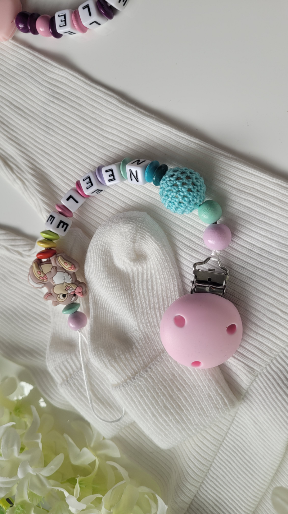Schnullerkette mit Häschen personalisiert mit deinem Wunschnamen.