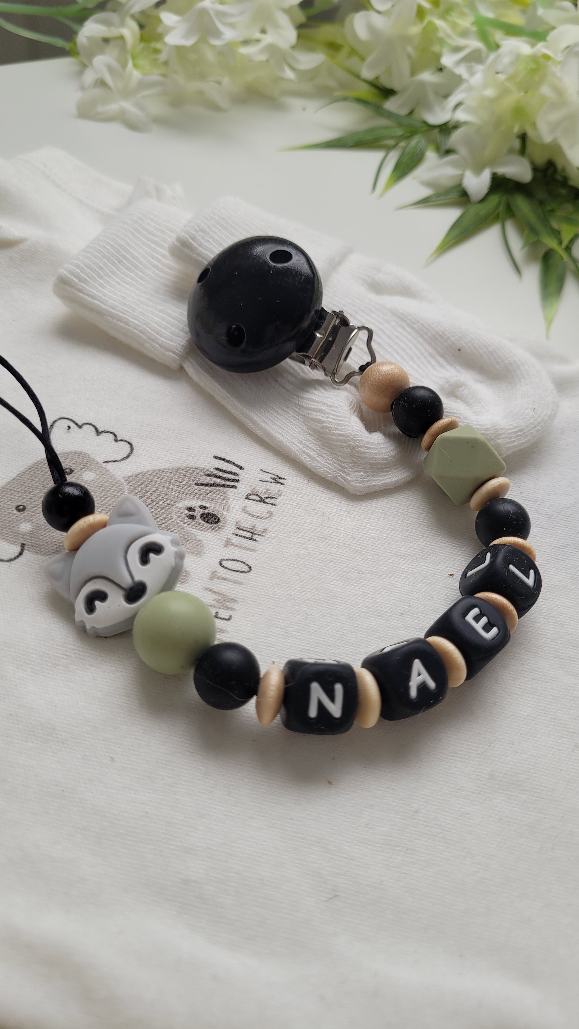 Aus holz und Silikonperlen mit dem Fuchsmotiv aus Silikon